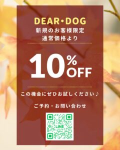 はじめてご利用いただくお客様へ、期間限定でトリミング料金を通常価格より10%OFFいたします🎁 ご予約の際に、「チラシ(またはSNS)を見ました」とお伝えいただくだけでOKです。お電話・LINE・いずれからのご予約でもご […]